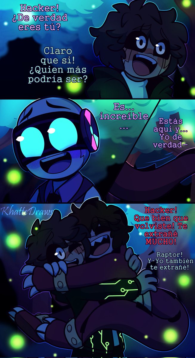 🖤BONUS🖤 🖤: E-Estas algo pesado- 🤍: Raptor, bájate! Vas a matar al pobre ❤️: Jiji perdón me emocioné ^^" 💙: Si quieres ponerte esto -le da la máscara- 🖤: Mi máscara! Gracias! :D 💙: Vaya, pareces muy feliz 🖤: ¿Como no voy a estar feliz? ESTOY VIVO!