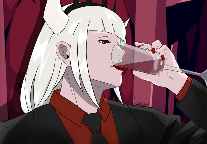 Lucy Drinking๐ท I try to prove that Luciferโs red wine is NOT an ornament #Helltaker #Helltakerfanart