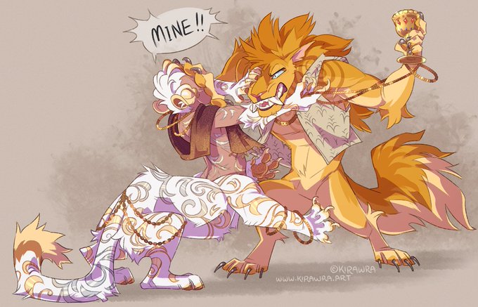 My first Art Fight attack, for @GreekCeltic! Their spoiled prince (Scenwulf) and my spoiled prince (Avarice) fighting like brat children over things they don't need 😂 💎 #artfight #artfight2023 #artfightwerewolves