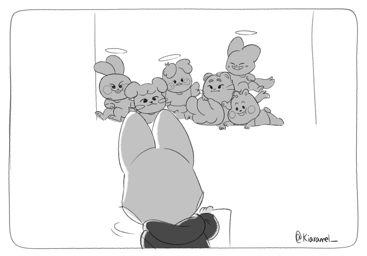 Based off true events that happened to me last month This is the most self indulgent thing I have ever drawn lsdjbkiuvilzskdj No cones were armed in the making of this !!!! #skzoo #SKZOOfanart #StrayKids #Straykidsfanart