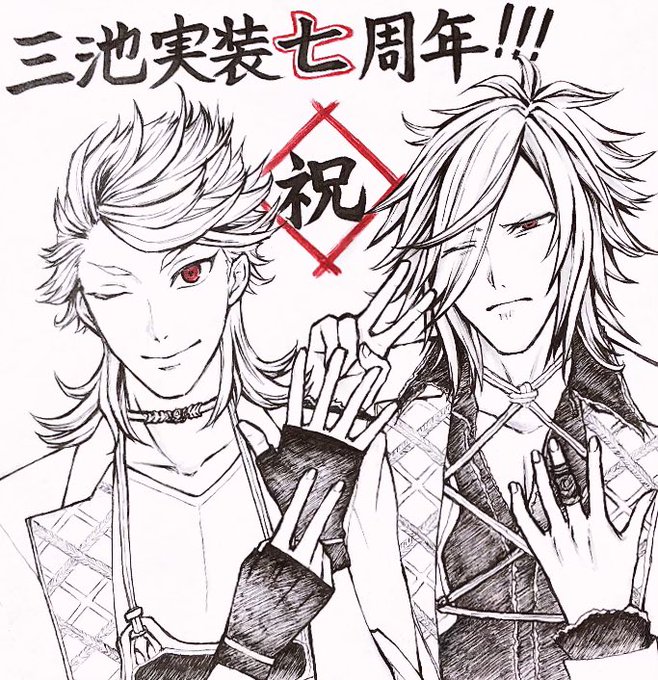 #8月16日は三池兄弟実装記念日 #三池実装7周年 #三池実装七周年 三池実装記念日おめでとうございます🥳🎉🎉✨✨ めでたい日なのでお願いしたらウインクぐらいしてくれるかもしれない… 三池に幸あれ㊗️大好きです!!!!!