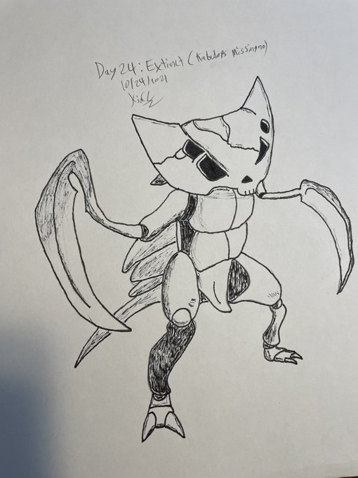 Day 24: Extinct (Kabutops Missingno) #Inktober #inktober2021 #inktober2021day24 #pokemon #kabutops #missingno