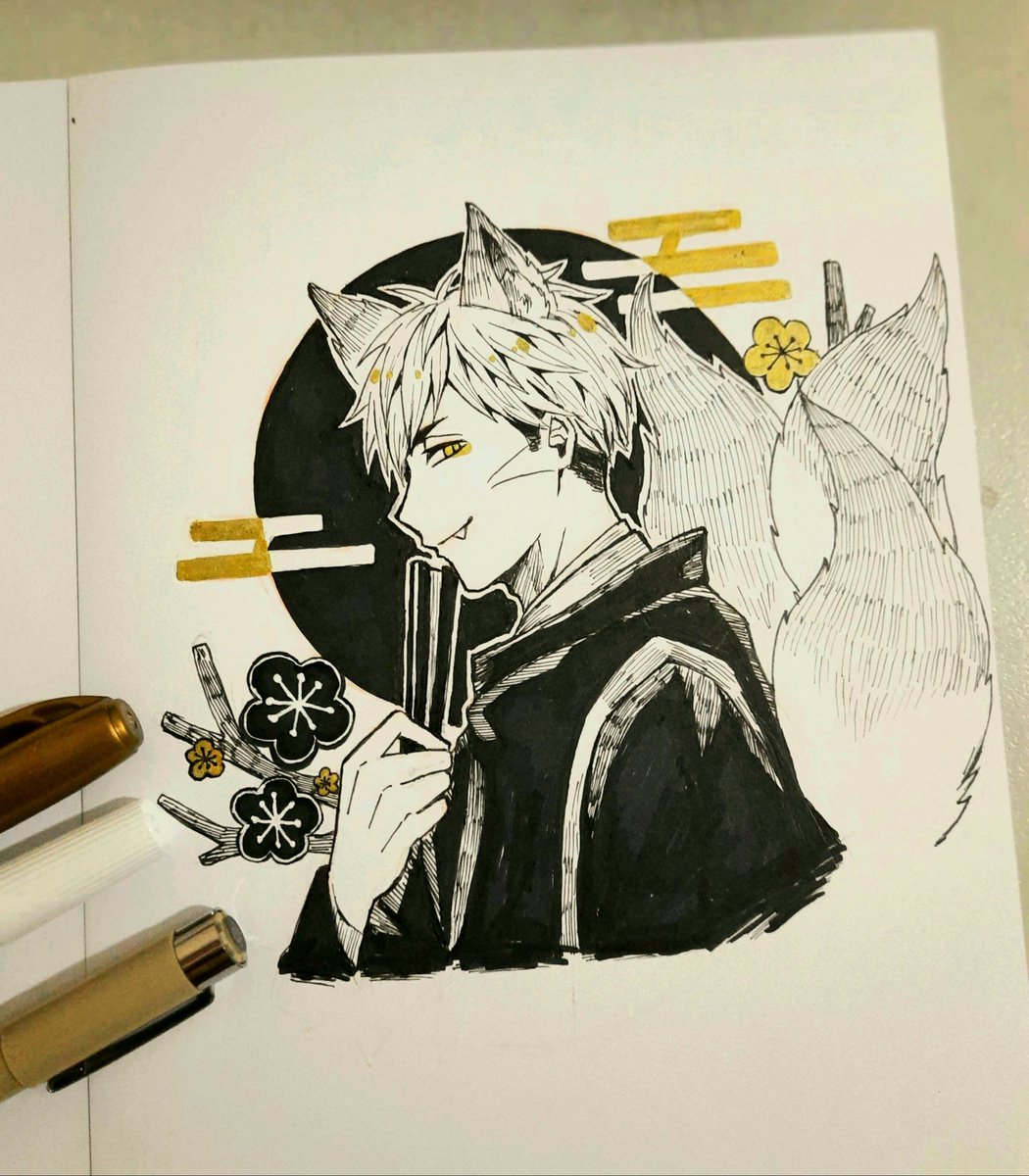 [12/30] #inktober2020 day 12 drawing #miyaatsumu as kitsune #inktoberday12 Day 12 - flower #haikyuutothetop #haikyuufanart