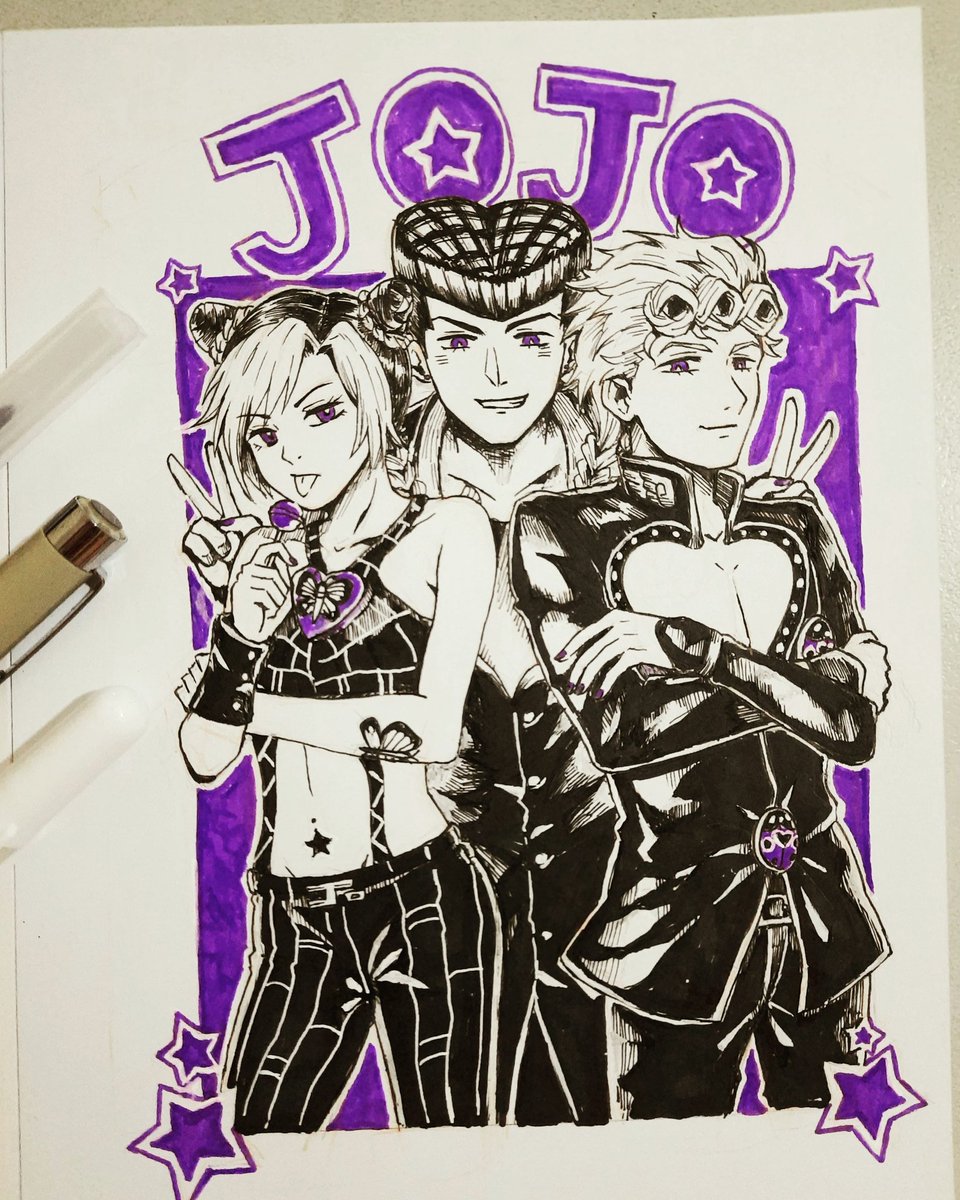 [7/30] #inktober2020 day 7, drawing #jojosbizarreadventure trio #jolynekujo #JosukeHigashikata #GiornoGiovanna Day 7 - Buddies
