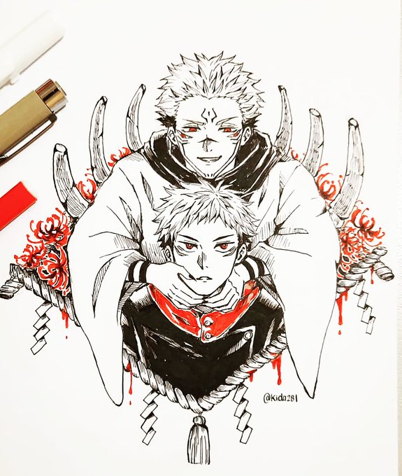 [13/30] #inktober2020 day 13, drawing #itadoriyuuji & #sukuna 🥰 #inktoberday13 Day 13 - rope #呪術廻戦 #JujutsuKaisen #宿儺 #虎杖悠仁