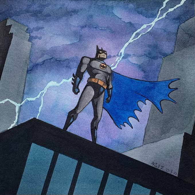 For #inktober2022’s prompt ‘bat’ I decided to paint my fav bat… the #Batman!! *cue thunderclap* #inktober #watercolor #fanart #dc