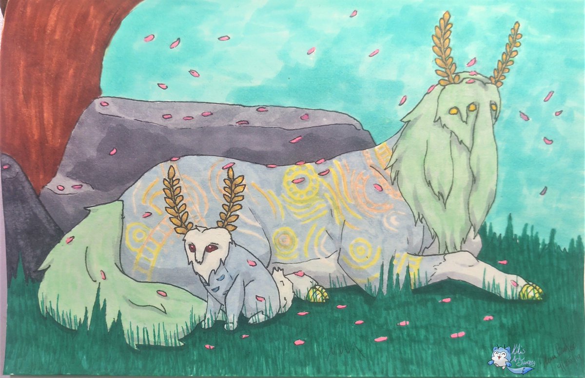 Day 5! Spirits/guides I went with the Lord of the Mountain and one of his little blupee buddies. I really like this one. #linktober #linktober2019 #ArtistsofLegend #lordofthemountain #blupee #spirit #legendofzelda #alcoholmarker #inktober
