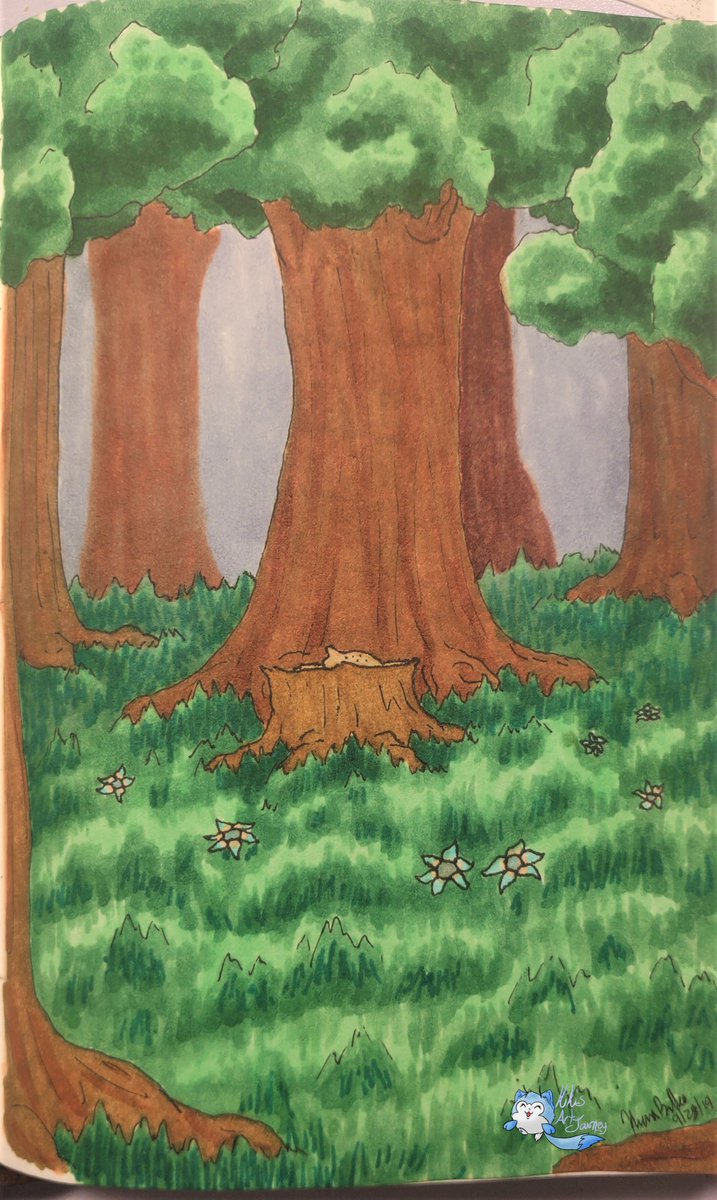 a little late today. But DAY 9!! Prompt is Forest I like my leaves and grass, the wood looks better in person. #linktober #linktober2019 #forest #LegendofZelda #inktober #alcoholmarkers #ArtistsofLegend