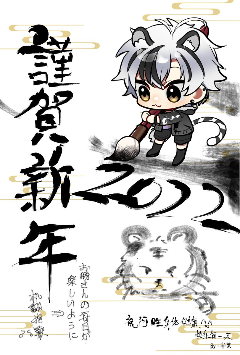 43 221 #漆黒の水鏡 今晚b限上给阿胜的年贺状😋 虽然p1图字写得丑但还是放一下👀 再次的新年快乐!今年也是阿胜单推人✨☪️ 22/02/06 02:07