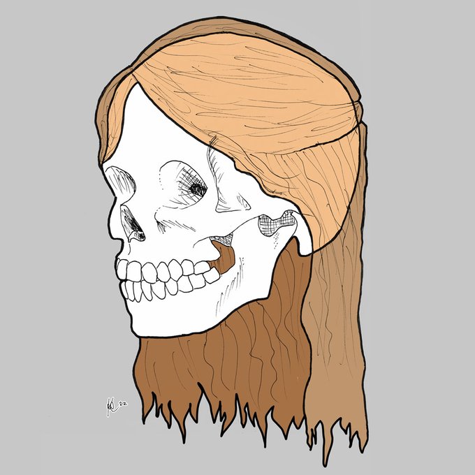 #inktober52celtic This idea comes from the rare times that archaeologists have found Celtic skeletons with hair intact. Fun fact: all hair in burials turns red/orange over time as it decays. #skull #inktober52 #inktober #inktober2022 #art #drawing #inkdrawing #Archaeology