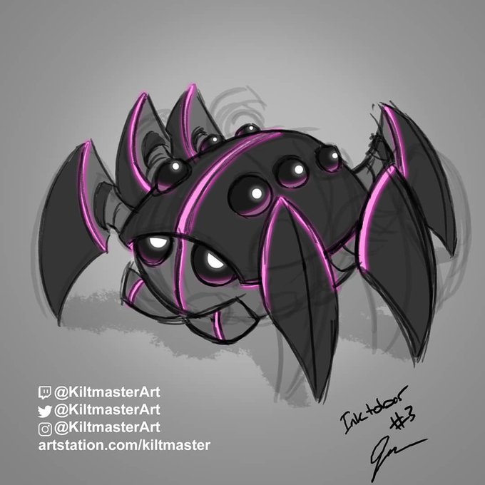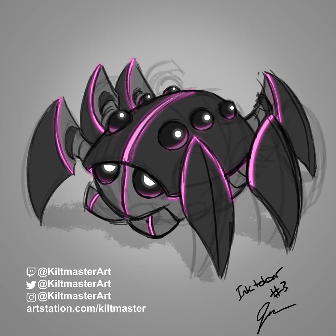 DAY 3! #Inktober continues with a tiny Techno Tic! This small #arachnid style Kaiten is a repurposed scout unit, now it's simply a Spinnerette pet. . . . #inktober2019 #Art #DigitalArt #inktoberday3