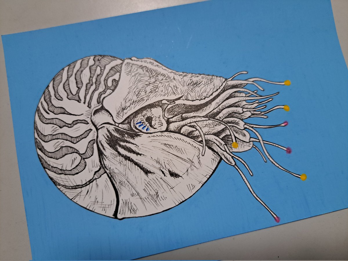 古生物好きはオウムガイも好きだよね!? きっとそうだよね!?😊 昔アクアリウムしてたとき飼いたかったけどあきらめちゃった #ペン画 #アナログ画 #みんなで楽しむTwitter展覧会 #芸術同盟 #絵柄が好みって人にフォローされたい #作品を載せて自分の作品を知ってもらおう