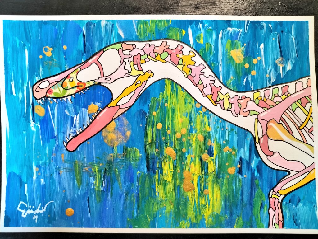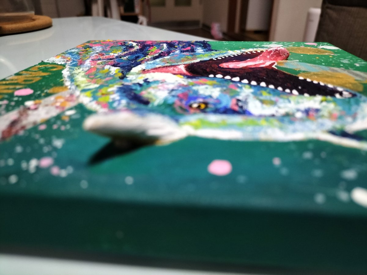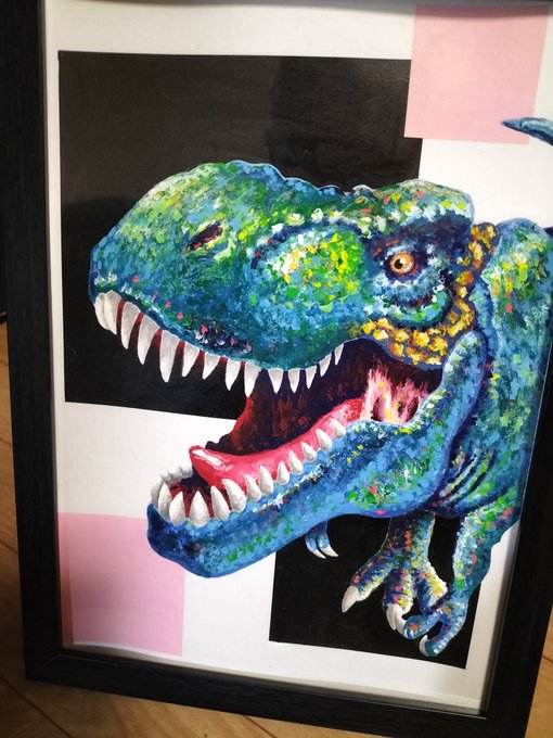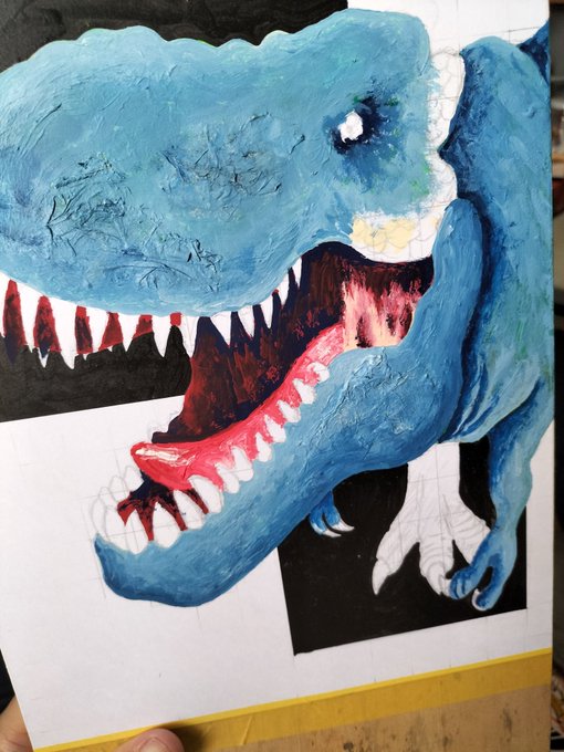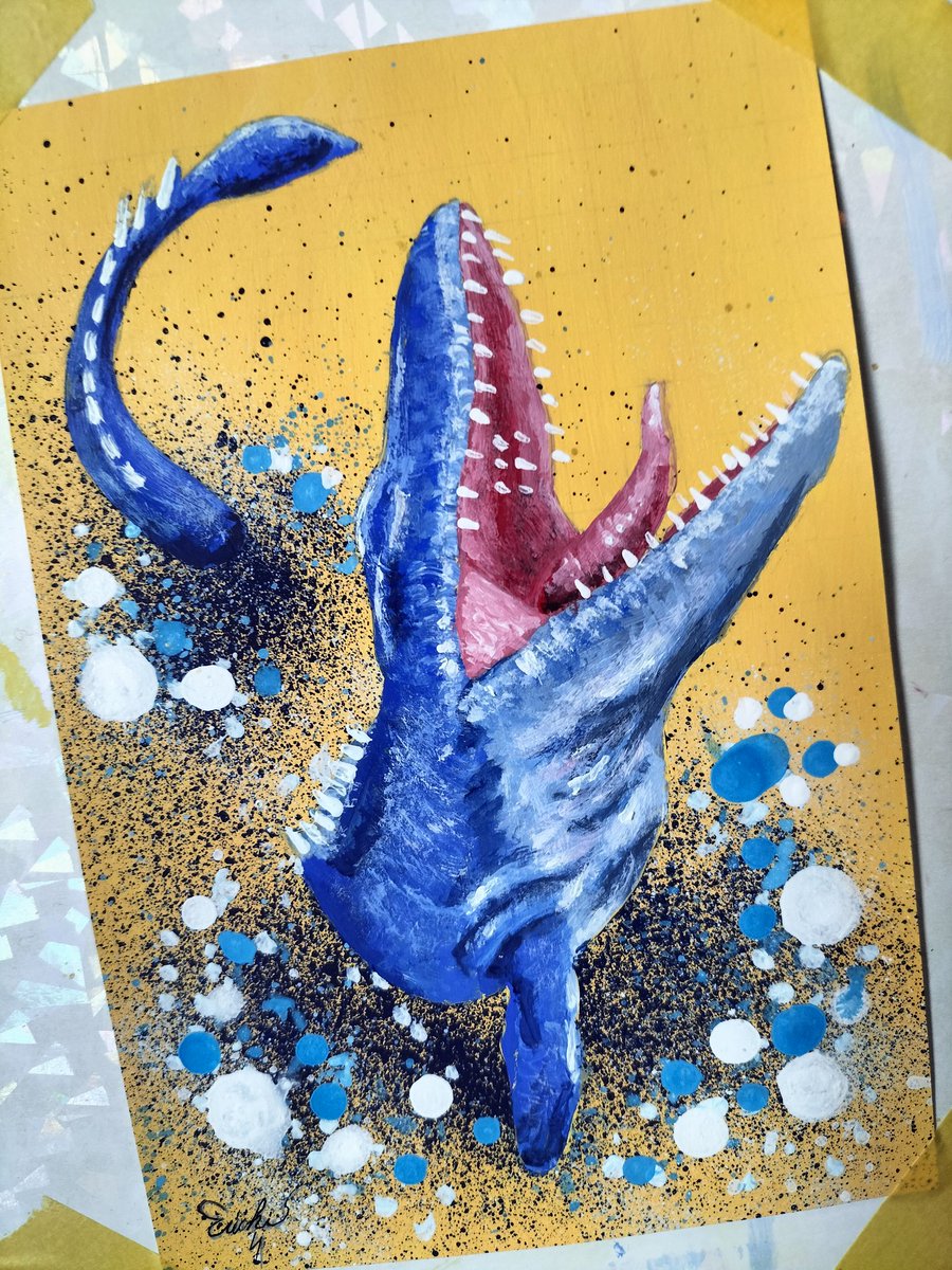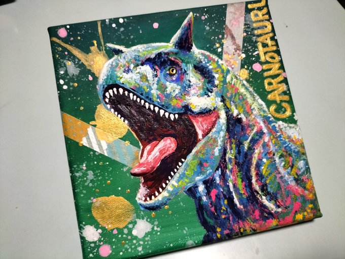 いよいよジュラシックワールド始まったぞー! 明日見に行くぞー! 絵はブルーちゃん この日まで温存しといた😁 #illustration #drawing #イラスト #アクリル画 #恐竜 #dinosaur #ジュラシック・ワールド