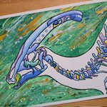 パラサウロロフスは好きですか? 草原を疾走してるイメージで‼️ #art #illustration #drawing #イラスト #アクリル絵の具 #恐竜 #dinosaur #お絵描き好きさんと繋がりたい