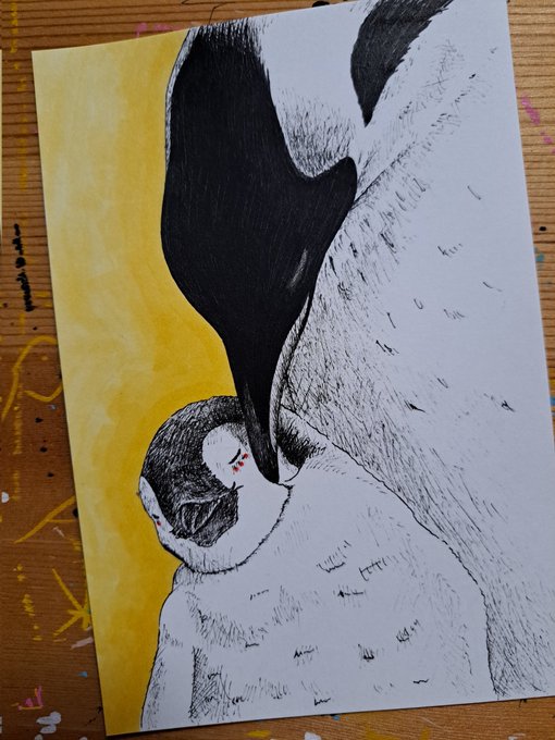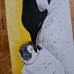 コウテイペンギンの親子ってあたたかい #2023年 #イラスト #絵画 #ペン画 #アナログ画 #作品 #生き物 #絵描きさんと繋がりたい #お絵描き好きさんと繋がりたい #作品を載せて自分の作品を知ってもらおう