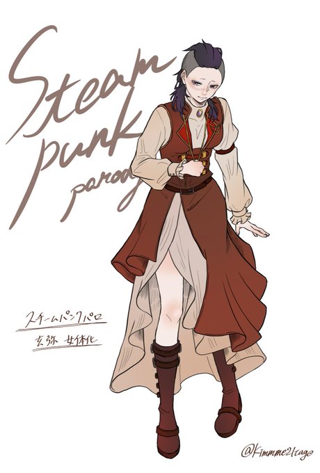 リクエスト 『玄i弥♀』です! スチパンパロ玄i弥が女の子だったら、こんな衣装かと!好きに描かせてもらいました🤭 リクありがとうね~~🙌✨🙇🏻♀️