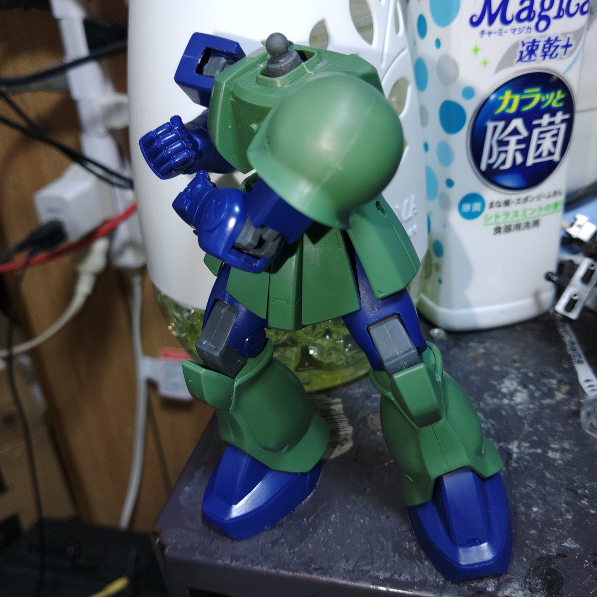 HGゴッグ下半身 古いHGだから脚の中心に合わせ目が 頑張って瞬間接着剤とヤスリがけで消しました。(゚∀゚ 三 ゚∀゚) #ガンプラ #ガンプラ初心者 #ガンプラ好きとつながりたい #ガンプラの画像を貼るとRTされると聞いて #ゴッグ