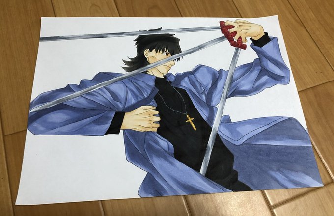 手に握った黒鍵は三本。 扇状に剣を展開したまま、神父は目前の髑髏を見据える。 「ああ。私のすべき事は、イリヤスフィールをお前に渡さぬ事か、────ここで、おまえを殺しておく事のどちらかだ」 #fate #fgo #イラスト #絵描きさんとつながりたい #コピック #drawingart