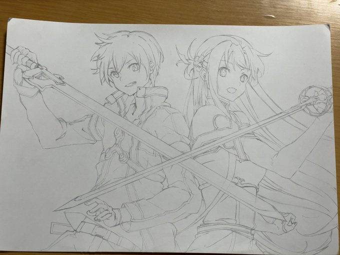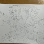 とりあえず下書きは終わった〜 もうちょいキリトを左に寄せれば良かったな…バランスが良くない(・ω・`) だが、時間がないので妥協です(._.) #イラスト #イラスト好きさんと繋がりたい #絵描きさんと繫がりたい #絵柄が好みって人にフォローされたい #模写 #SAO