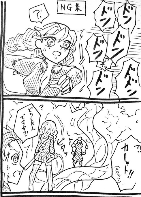 vs💜戦の落書き(撮影シーン妄想) 黙ってればバレなかったのに...