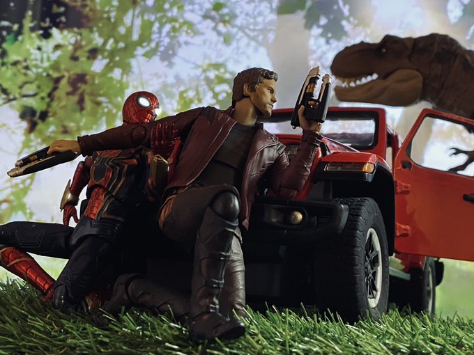 「ねぇ!あれって本物のT-REX!?」 #オモ写 #toyphotography #スパイダーマン #ジュラシック・ワールド