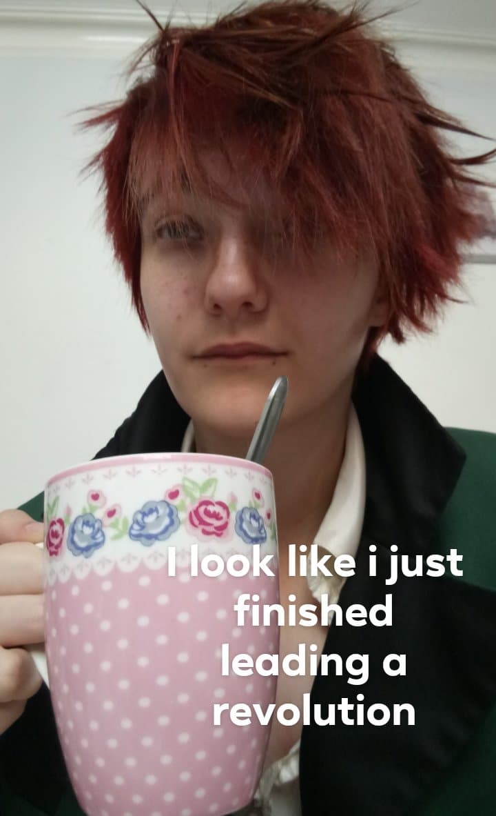 Y'all ever just look good af and as soon as you come home you just... Die? #cosplayer #androgynous #Pirates #cosplay #redhead #tired #actor #drama #coffeeaddict