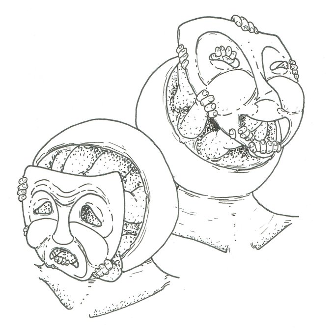 Day 18 of #inktober2019 - Misfit "It was like they all popped out at once, I just can't see John the same way again." #Inktober #horror #creepy #monster #art #traditionalart #disturbing #odd #weird #bodyhorror #occult #cult #cryptid #misfit #mask #junjiito #silhouette #amigara