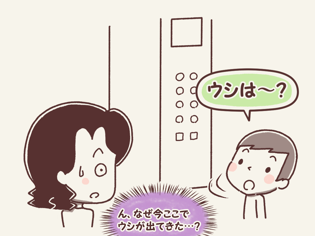 似ている言葉なんだなと気付かされる… #育児絵日記 #育児漫画 #育児イラスト #3歳 #屋上と牧場 #ウシは牧場 #引っかけ問題みたい #ウシ年の終わりにウシネタで #来年のトラネタはまだない