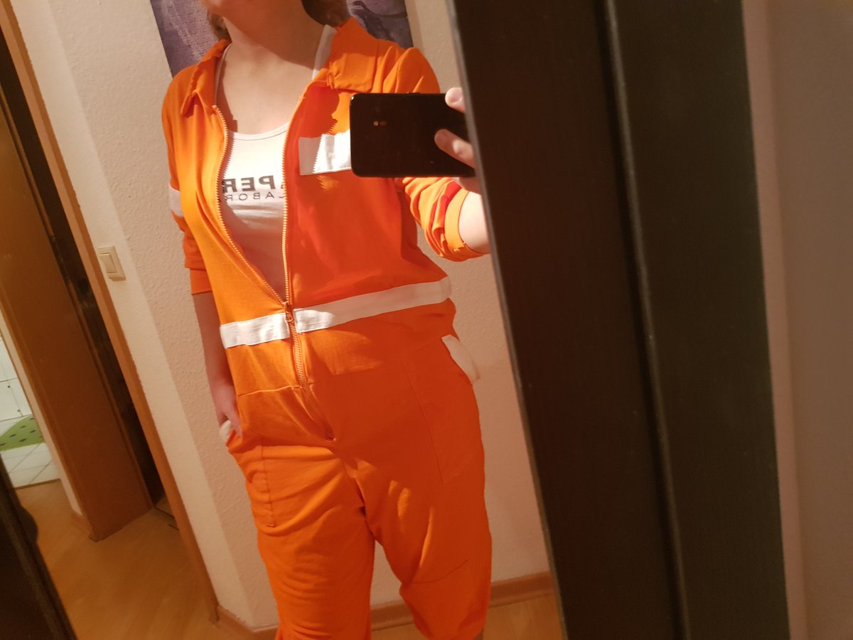 Genug gefaulenzt, heute endlich mal wieder genäht. Aus dem Zweiteiler wurde ein Einteiler, außerdem kam heute das aperture-logo auf den Rücken, der Reißverschluss rein und nähte wurden versäubert. #wipcosplay #aperture #PortalGame #Portal #Testobject #DieseFarbe #Cosplay