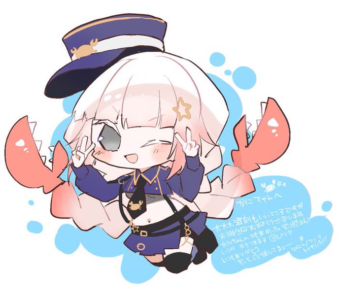 なんと…ヒナモリパパ(@18Ar0)から お誕生日絵を描いて貰っちゃいました🦀😳❣️ 掲載許可も頂いたので皆見て見てぇ〜💓 ふわっと帽子が浮いてるとこも ぷにっとおっぱいとお腹可愛い🤤💕💕 ういんくダブルぴーす可愛すぎだろ!