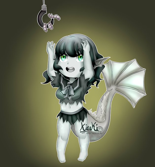 Time for #inktoberday3 #bait Since the theme was Bait I decided to use my OC Mika Suzuki and make her a fish woman. She's trying to grab herself some worms (candy worms). Let me know what you think of her! #inktober2019day3 #Inktober