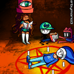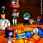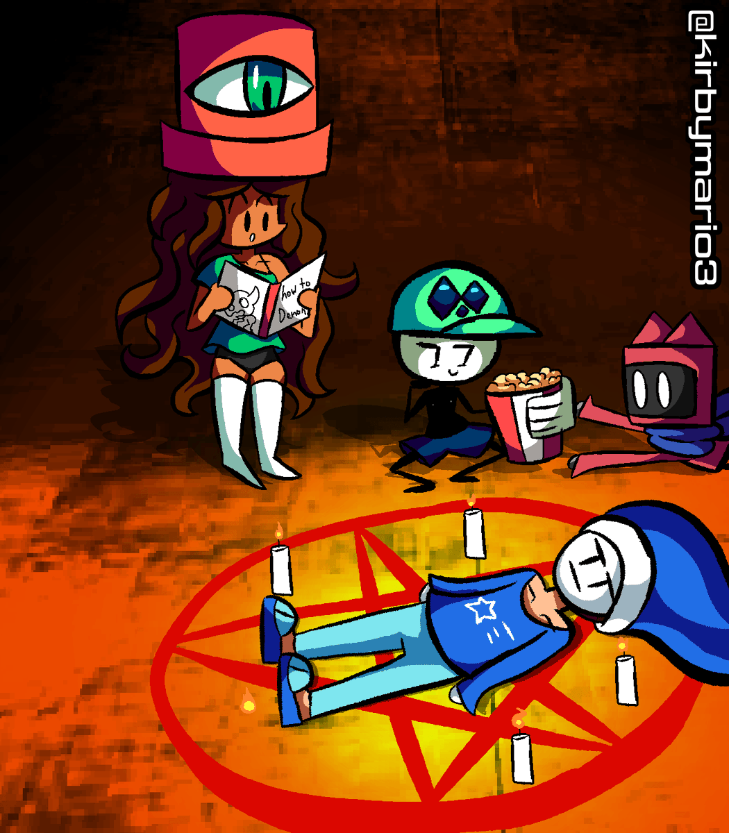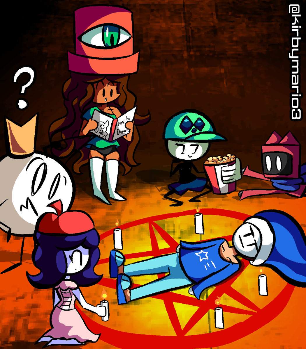 how to summon demons for dummies ft: Diannie, Alph, Katz, Brando, Kirmai, Mime Girl. Truly the best way to spend a sleepover is possible sacrificing one of your friends to have a cool demon in your party. (excluding Brando) Hope you enjoy and retweet! #ArtistOnTwitter #OC