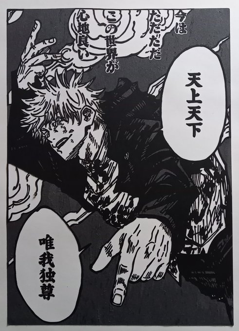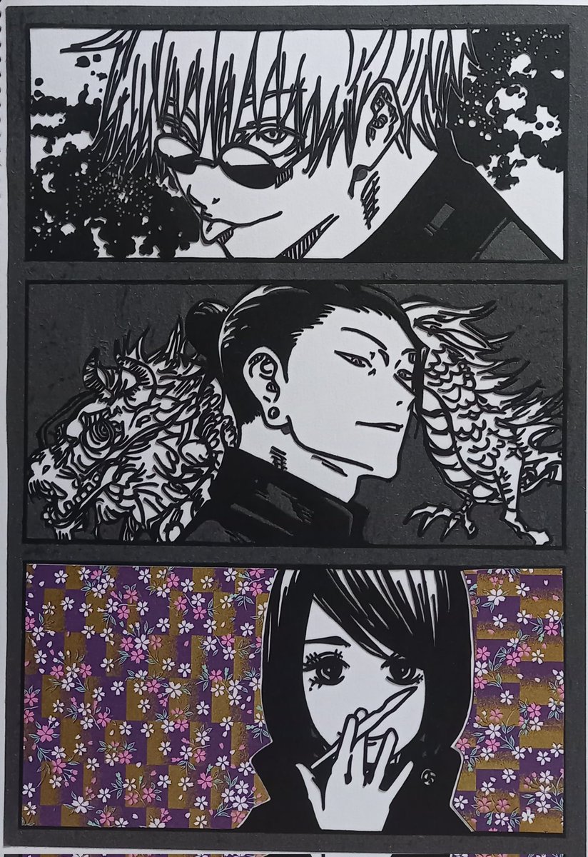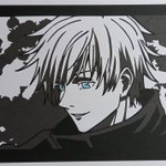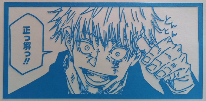 「正っ解っ!!」 出来たー!! 呪専の五条悟、完成です(ㆁᴗㆁ✿) めっちゃ細かい所しかなかった… もう一枚、五条さん作るよ〜 頑張りまする。めっちゃ大きいの。このサイズのスケブ探さないと… #呪術廻戦ファンアート #五条悟 #切り絵