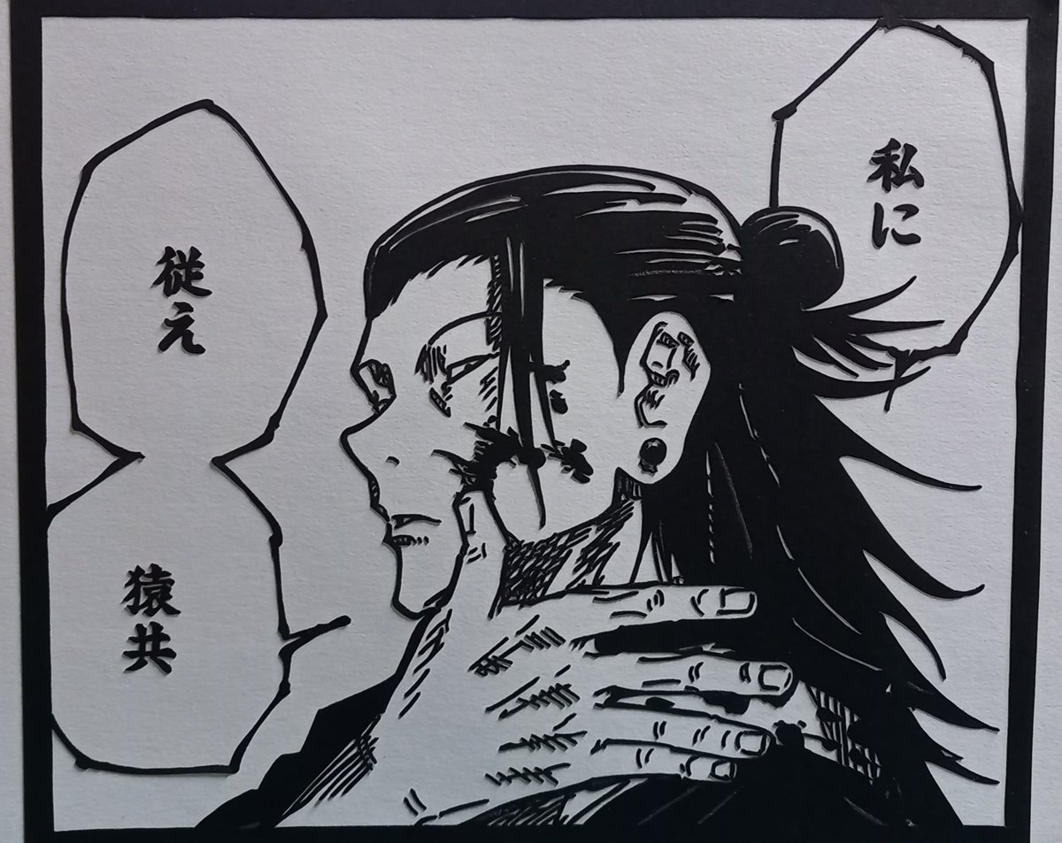夏油傑『私に従え 猿共』 夏油さんの切り絵第二弾! 教祖様の夏油さんです(*‘ω‘ *) 割と細かい所があってちょっと苦労した… 見てくれると嬉しいです(_ _*)) #呪術廻戦ファンアート #夏油傑 #切り絵