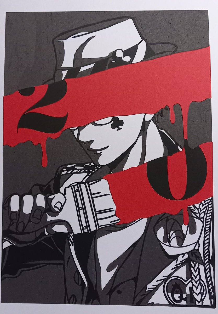 けーくん完成♦ いい感じに出来たと思う! 次はトレイ先輩♣️→リドルくん🌹 🌹寮が終わったら🐚寮を作る予定です( ˇωˇ ) はよ🐬先輩をアイコンにしたい🙄 #ツイステファンアート #twstファンアート #切り絵 #剥がし切り絵