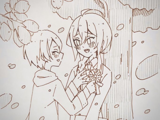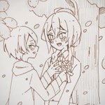 アナログで参加失礼します(+10min) 卒業生にコサージュつけてるところを描きたかったんです #忍同ワンドロ