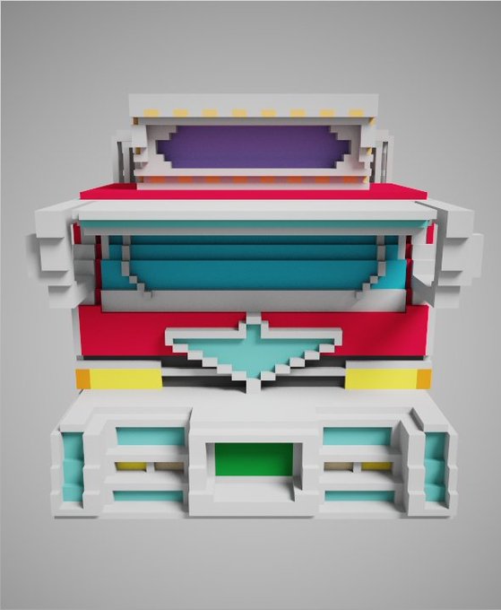 🐻< #voxelart のデコトラ完成✨😎✌️ 結局この前の状態から更に細部詰めて仕上げてみました〜 今後みんなのオリジナル荷箱乗せたりTheSandboxにNFT作品として出したりする予定です! 今後も色々作るので応援お願いします💪 #Magicavoxel #voxelmotors