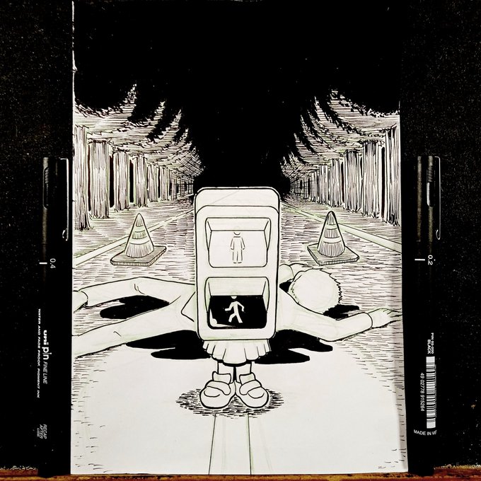 YUME-TOBER Day 03 - Stoplight #artetradicional #tradicionalart #inkart #inktober2021 #yumenikki #yumetober