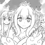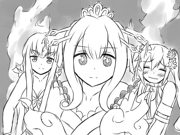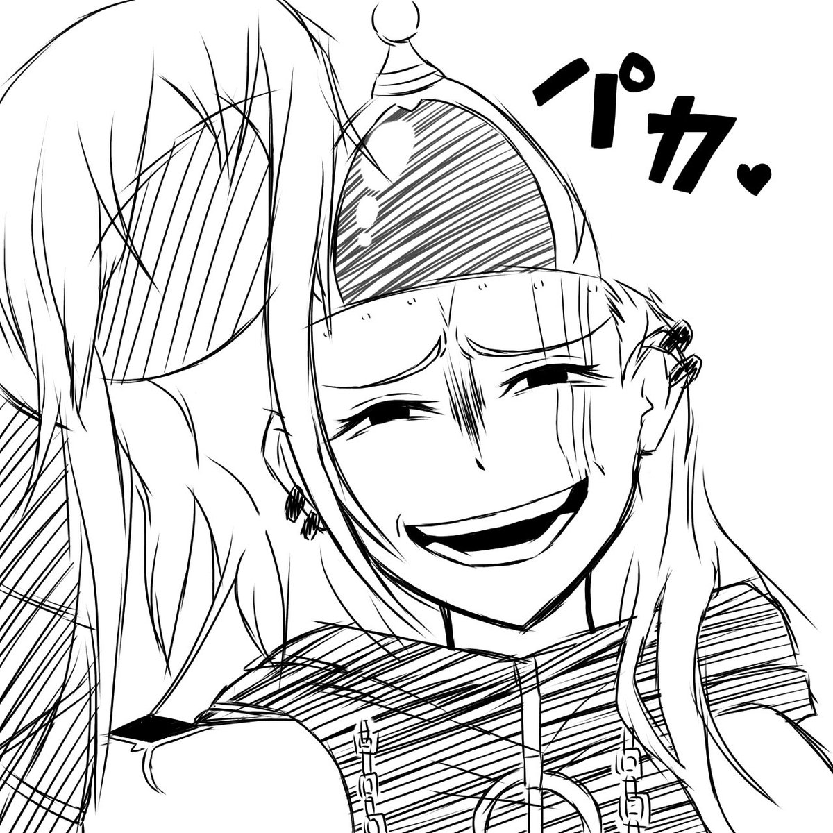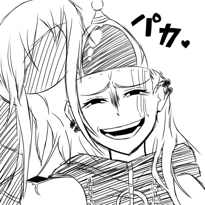 #今年も残りわずかなのでお気に入りの4枚を貼る お気に入りはこの4枚ですかね〜 2枚目は白黒ですが、落書き以外で明日ちゃんキャラを描いたのはこれだけなのよね・・・今、色を塗り直してますが(モチベ的に)完成は暫く先ですかね 会話が聞かれてる旭殿は早くもお気に入りランクインです