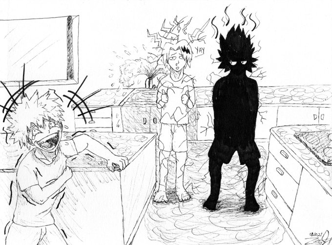 #inktober2021 Prompts: Crispy, leak and spark. #Denki fried #KirishimaEijirou and #bakugoukatsuki is dying over it. Just really fun to draw this bullshit 🤣 #kiribaku #mha #bnha #BNHAfanart