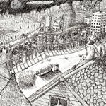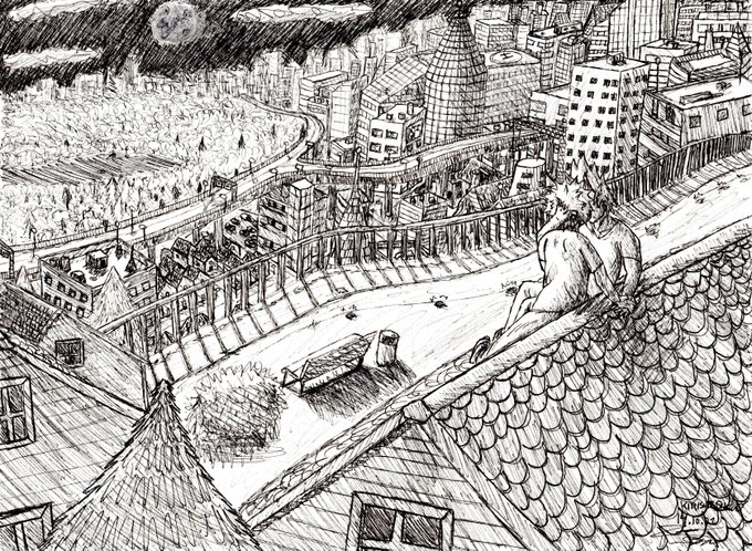 #inktober2021 Prompts: Stuck, roof, open and moon. Never done a cityscape before o.o" #kiribaku #bakushima #BNHAfanart #mha #KirishimaEijirou #katsukibakugou