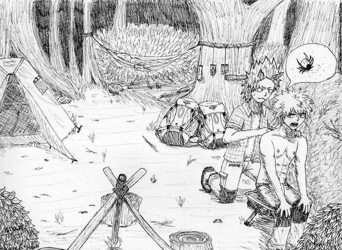 #inktober2021 Prompts: Tick, knot and compass. #KirishimaEijirou and #bakugoukatsuki on one of their campingtrips <3 Kirishima is not a fan of ticks, and having to remove one from Bakugou is not okay 😂 #kiribaku #bakushima #BNHAfanart #mha
