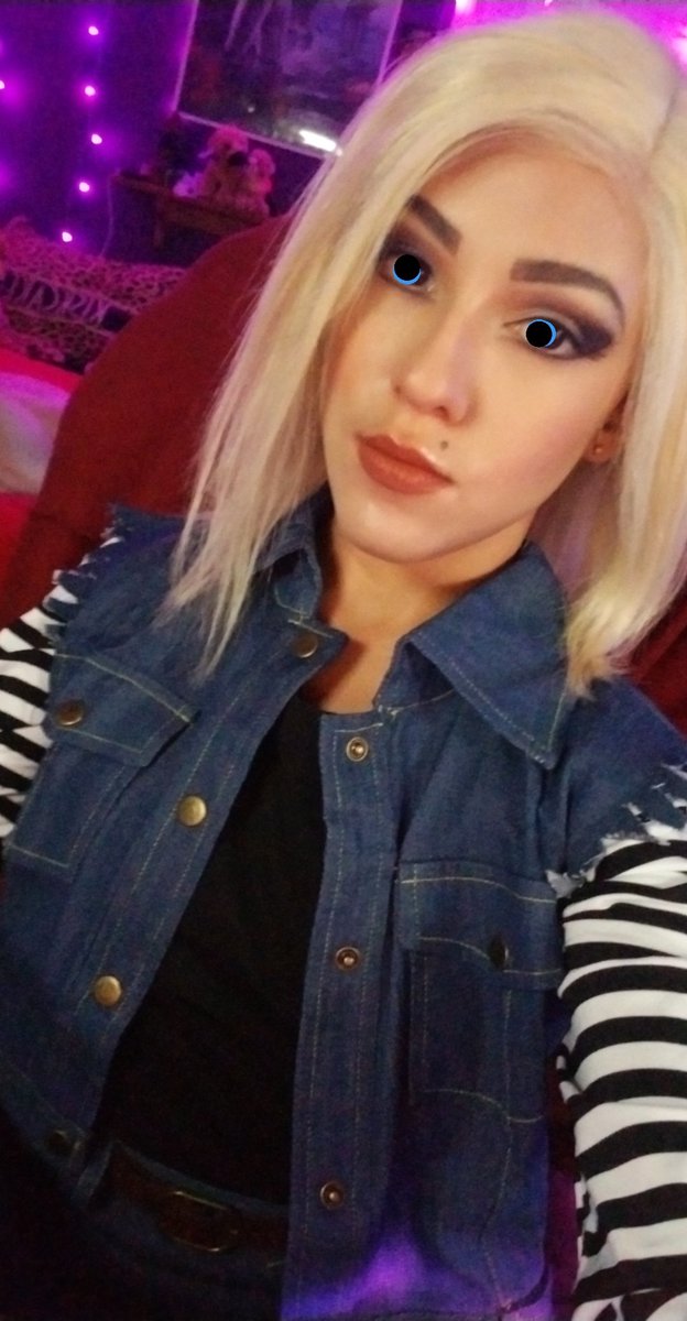 One day I'll get blue contacts but 🔴#live right now on twitch.tv/kiskcake 🔥🎮🍰 come say hello! #android18 #cosplay