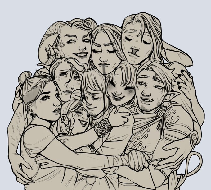 SCREAMINF about my kids getting a show!! YES!! I will color this later, I just had to celebrate somehow! Group hug for my mighty mighty nein 💙💙💙 #Criticalrole #mightynein #criticalrolefanart