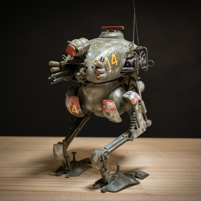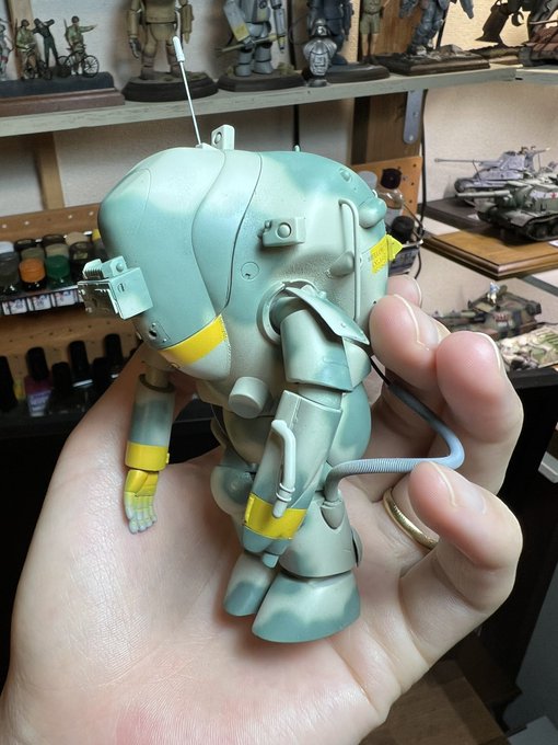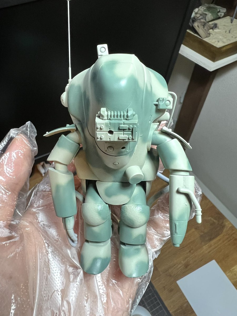 迷彩いい感じなのでは…!(イメージを具現化するためにマスキングよく頑張った…) デカールで差し色を加えたら更に締まりそうだ #マシーネン #ラクーン