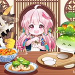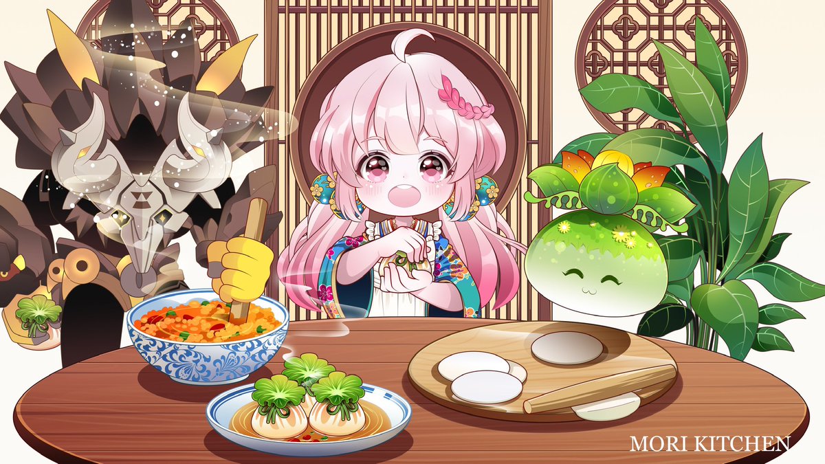 原神飯テロの常習犯Moriです❣️ 草スライム、岩兜の王と私で翠玉福袋を作りました❗️ #原神イラスト #原神 #Genshin #GenshinImoact #genshinimpactfanart #原神料理部