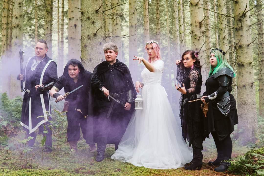 Don't mess with my #DnD crew ⚔️ This is another amazing photo by @krakencinematic who took these for our #dungeonsanddragons wedding! @dndwizards #dndwedding #wedding #forest #photography #warlock #fighter #sorceror #necromancer #rogue #druid #cosplay #DnDCosplay #adventure