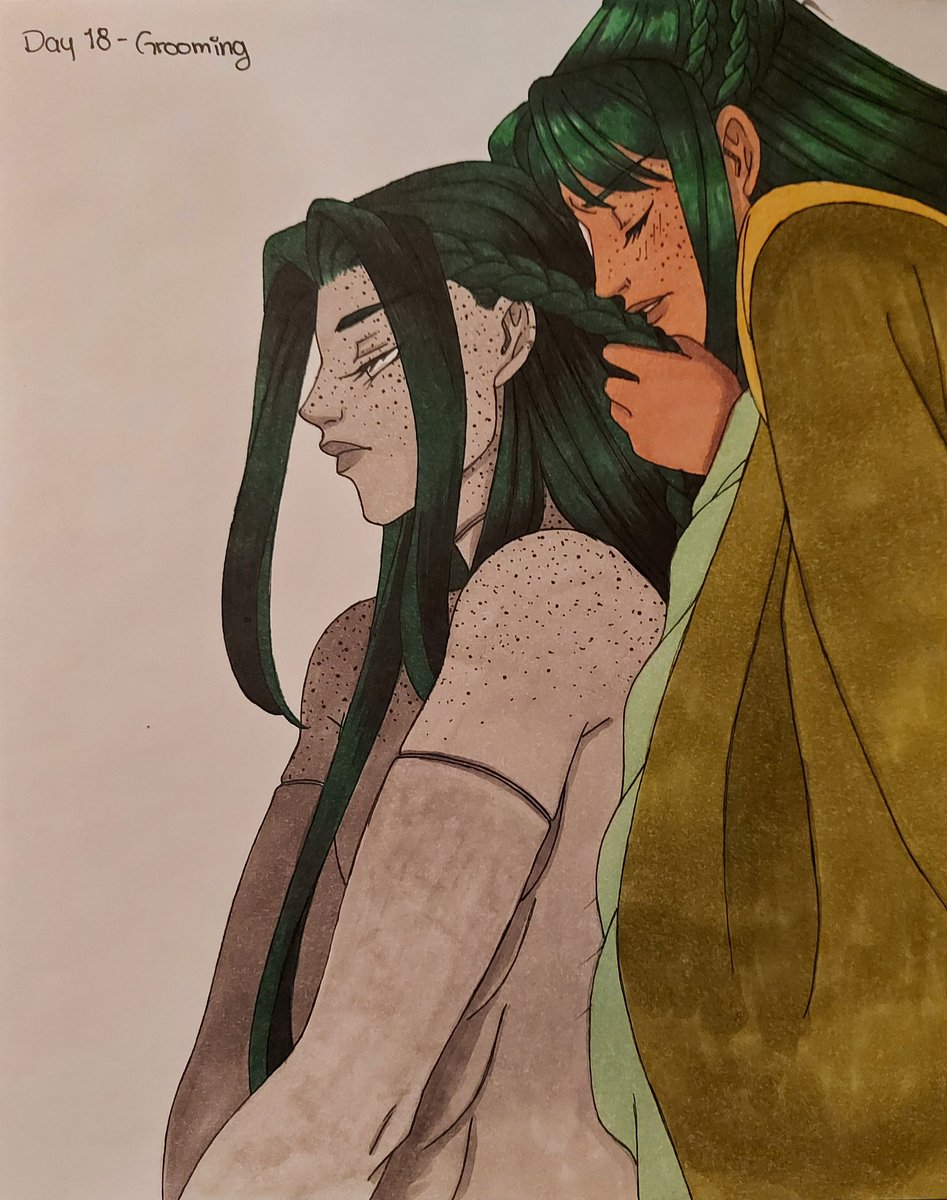 #inktober2021 #NieMingjue #NieHuaisang Day 19: bathing/grooming More fierce corpse nmj this time with poor nhs trying not to cry as he braids his brother hair. This two just give so many feelings 🥺