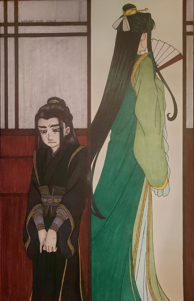 #inktober2021 #niemingjue Day 20: crossdresing I was not in the mood to actually do a crossdresing, so i thought on dage wearing hubby colors. I have done it plenty with wen clothes, but never with lan clothes so i decided to correct the situation.