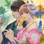 8/20 夏インテ (かぶき超大集会 2023夏) 6号館D【ホ13b】狐火゜ めがぴさん(@megapihjok)の無料配布小説の表紙になります。 pixiv.net/artworks/11065… ノリノリで描かせていただいたドヤ顔即落ち2コマな沖田くんです。ぜひ見開きで裏表紙まで見ていただきたいために中綴じ仕様になっております😌💚🧡